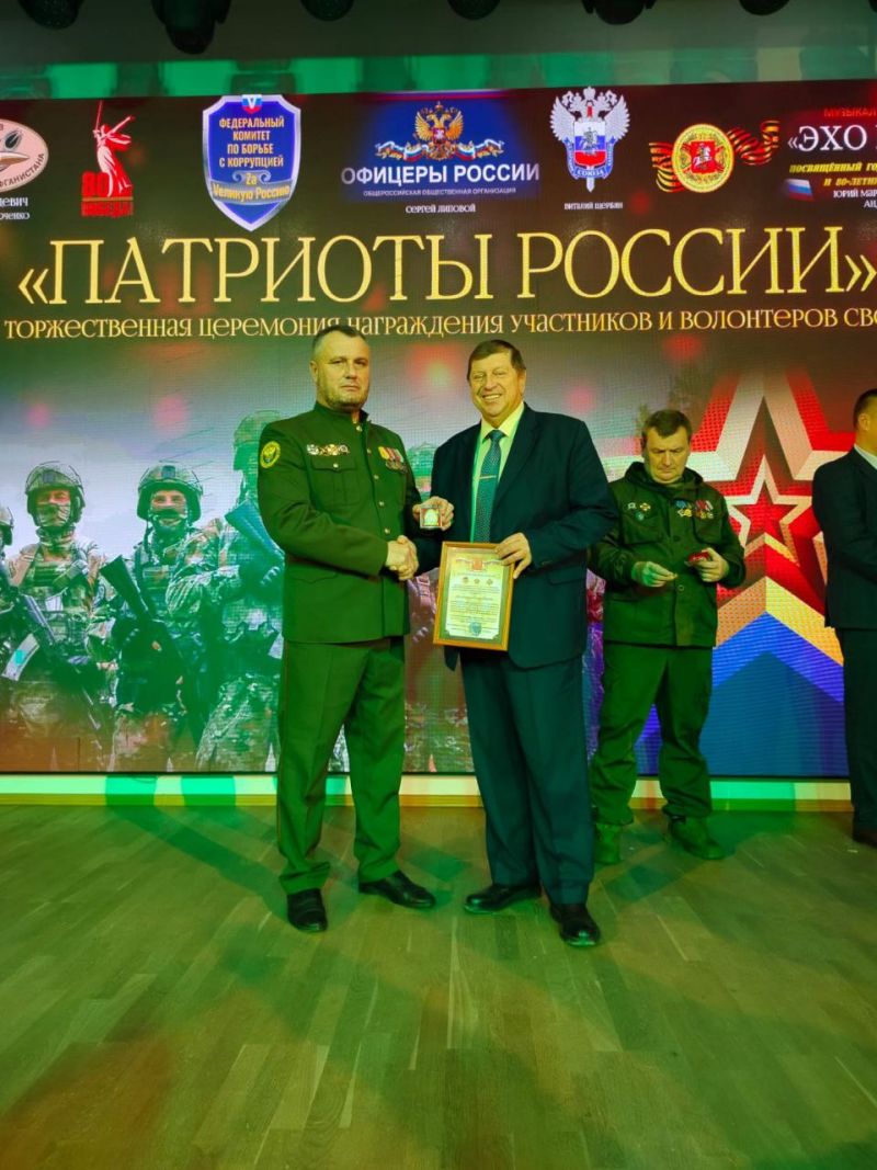 Общественная организация "Офицеры России", Федерация «Союз казаков», Комитет по борьбе с коррупцией и терроризмом провели церемонию награждения участников и волонтёров СВО "Патриоты России".